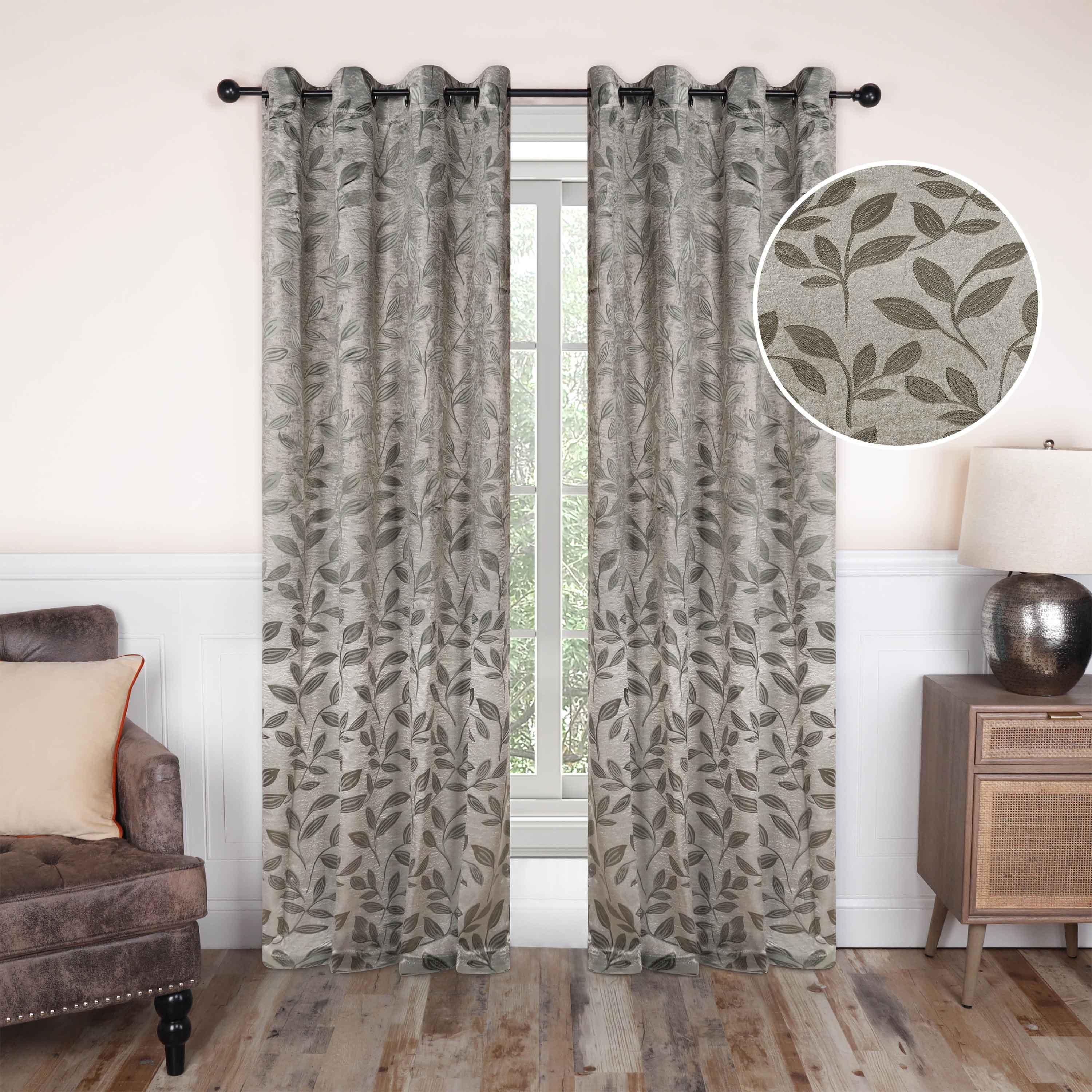Leaves Machine Washable Room Darkening Blackout Curtains, Set of 2