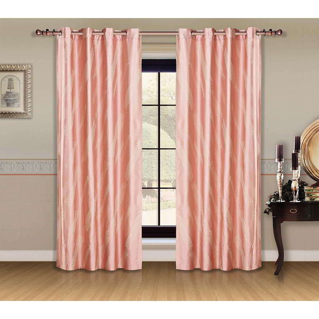Bring the utmost style and elegance to any room with these luxury linen drapery panels featuring beige jacquard polka dot scrolling patterns on a shiny pink background that create a peaceful and pleasant decor.