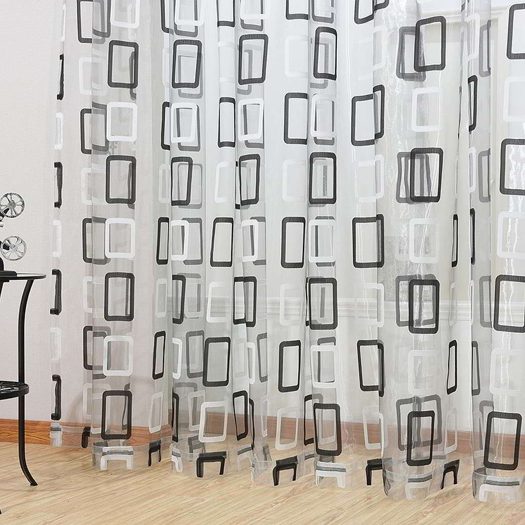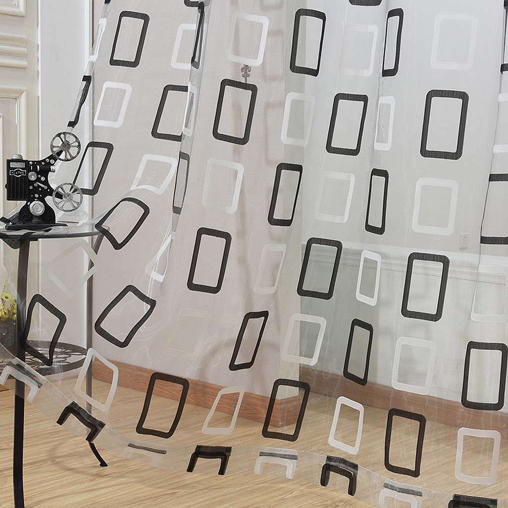Decorate every window with style and sophistication with these luxury sheer panel curtains featuring back and white rectangles in symmetrical patterns.