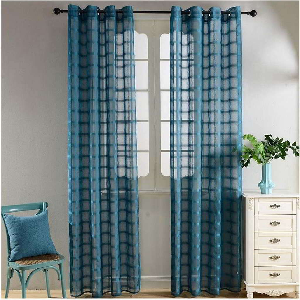 Decorate every window with style and sophistication with these luxury sheer panel curtains featuring dodger-blue square patters.